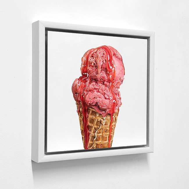 I really love the whimsical and playfulness of painting food, with this series I have decided to paint ice creams. I want them to be bright, fun engaging and maybe a little nostalgic whilst also being mouth watering and inviting. I love the way oil paint can mimic the frozen and velvety texture of the ice cream and also the crispness of the cone. I feel that photorealistic style creates a sense of familiarity and comfort as if the ice cream could be plucked straight from a summer afternoon. |