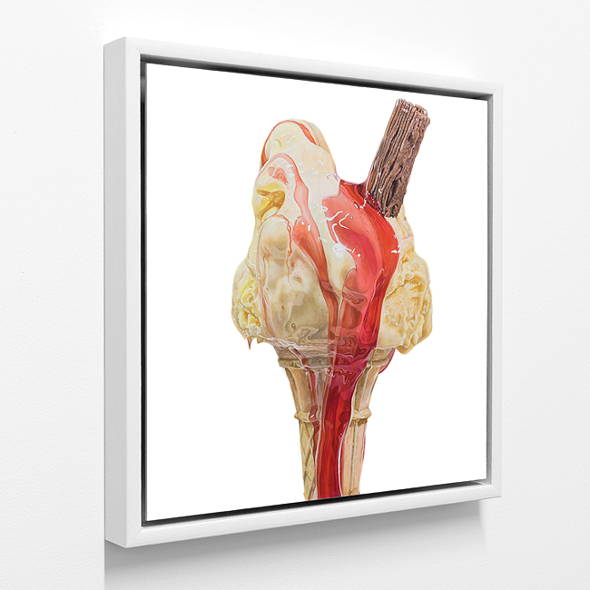 I really love the whimsical and playfulness of painting food, with this series I have decided to paint ice creams. I want them to be bright, fun engaging and maybe a little nostalgic whilst also being mouth watering and inviting. I love the way oil paint can mimic the frozen and velvety texture of the ice cream and also the crispness of the cone. I feel that photorealistic style creates a sense of familiarity and comfort as if the ice cream could be plucked straight from a summer afternoon. |