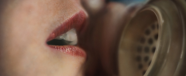 Bittersweet Strawberry shows a woman’s mouth speaking into a telephone receiver. Because it is a 1970s phone, the viewer begins to place a narrative on the work, to contextualise it; the viewer is left to decode the title, which refers in part to the strawberry lipstick; does it signify a negative or a positive conversation is going on? It’s human nature to wish to interpret such emphatic highlighting of certain objects and images. |