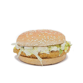Quarter Pounderâ„¢ with Cheese, 2023 Quarter Beef Patty, Sesame Bun, Cheddar Cheese Slice, Tomato Ketchup, Pickle Slices and Onions. Oil Paint on Linen, 350 x 350mm